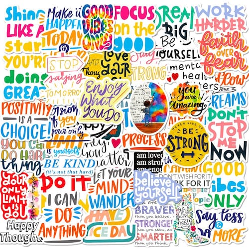 Material: papel e vinil Peso: 30-60 g Tamanho: 3-6 cm Quantidade: 50 unidades Afirmações positivas: inclui 50 adesivos com palavras motivacionais, citações encorajadoras e designs fofos para inspirar confiança e positividade. Qualidade de vinil durável: o material impermeável, resistente a arranhões e à prova de desbotamento garante que os adesivos permaneçam vibrantes e duradouros em ambientes internos ou externos. Fácil de aplicar e remover: um adesivo forte facilita a colagem segura dos adesivos, enquanto a remoção sem resíduos permite o reposicionamento sem danos. Decoração versátil: perfeita para laptops, diários, agendas, álbuns de recortes, skates, malas e projetos de artesanato DIY. Para adolescentes e adultos: ótimo para crescimento pessoal, lembretes diários e decoração criativa com citações inspiradoras e estilos estéticos. Afirmações positivas: inclui 50 adesivos com palavras motivacionais, citações encorajadoras e designs fofos para inspirar confiança e positividade. Qualidade de vinil durável: o material impermeável, resistente a arranhões e à prova de desbotamento garante que os adesivos permaneçam vibrantes e duradouros em ambientes internos ou externos. Fácil de aplicar e remover: um adesivo forte facilita a colagem segura dos adesivos, enquanto a remoção sem resíduos permite o reposicionamento sem danos. Decoração versátil: perfeita para laptops, diários, agendas, álbuns de recortes, skates, malas e projetos de artesanato DIY.
