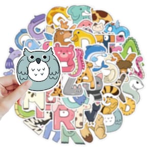 Material: papel e vinil Peso: 30-60 g Tamanho: 3-6 cm Quantidade: 52 unidades Alphabet Animal Tema: inclui 52 adesivos com letras decoradas com animais fofos, como pandas, corujas, tigres, zebras e muito mais, combinados com detalhes florais. Impermeável e durável: feito de adesivos de vinil de alta qualidade que são à prova d'água, resistentes ao sol e ao desbotamento para uso duradouro em ambientes internos ou externos. Decoração criativa de bricolage: perfeita para personalizar laptops, skates, garrafas de água, capas de telefone, álbuns de recortes e material escolar com arte alfabética divertida. Educacional e divertido: ajuda as crianças a aprenderem letras enquanto desfrutam de adoráveis desenhos de animais, tornando-os ideais para educação infantil e atividades em sala de aula. Fácil de aplicar e remover: os decalques autoadesivos descascam suavemente, grudam com firmeza e podem ser removidos sem deixar resíduos pegajosos.