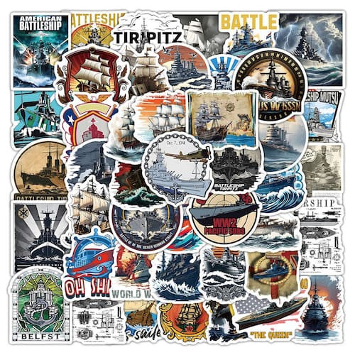Material: papel e vinil Peso: 30-60 g Tamanho: 3-6 cm Quantidade: 51 unidadesConjunto de adesivos de navio de guerra de 51 peças com navios de guerra da Segunda Guerra Mundial, veleiros clássicos e ilustrações temáticas da Marinha, perfeito para fãs de história e colecionadores. Feito de material de vinil impermeável premium, resistente a rasgos e desbotamento, adequado para decoração interna e externa. Ótimo para decorar laptops, malas, garrafas de água, cadernos, álbuns de recortes, skates e capas de telefone com estilo militar ou náutico. Fácil de aplicar — design de descascar e colar com forte adesão, removível sem deixar resíduos pegajosos, permitindo fácil personalização. Ideal para adolescentes e adultos interessados em história naval, cultura marítima ou em adicionar uma estética ousada de aventura oceânica aos seus pertences.