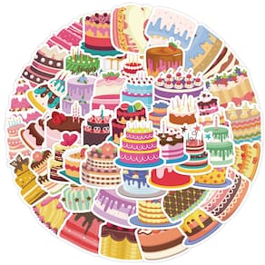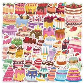 Pacote de adesivos, bolo de aniversário, sobremesa de desenho animado, 50 unidades