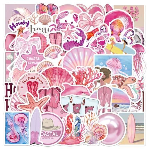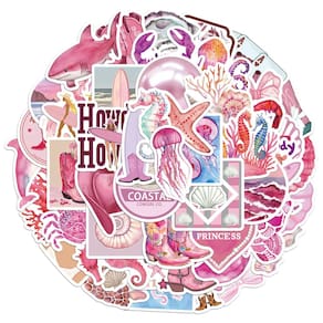 Material: papel e vinil Peso: 30-60 g Tamanho: 3-6 cm Quantidade: 50 peças do tema Ocean Coastal 50 peças de adesivos de vinil com golfinhos, medusas, conchas marinhas, tartarugas marinhas, estrelas do mar, corais, botas de cowboy, pranchas de surfe e designs estéticos costeiros rosa marinho. Duráveis e impermeáveis Feitos de material de PVC de alta qualidade, esses decalques são à prova d'água, resistentes ao desbotamento e de longa duração, ideais para decoração interna e externa. Ampla variedade de usoPerfeito para laptops, garrafas de água, álbuns de recortes, diários, capas de telefone, guitarras, skates e malas, adicionando uma atmosfera costeira de sonho. Os adesivos autoadesivos Easy Peel & Stick descascam suavemente e colam firmemente em superfícies planas e limpas, removíveis sem deixar resíduos e reutilizáveis para aplicações criativas. Estilo Cute Teen Girl Projetado para estudantes, amantes do diário e fãs de bricolage que gostam da estética kawaii, marinha e rosa costeira.