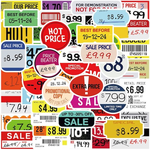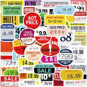 Material: papel e vinil Peso: 30-60 g Tamanho: 3-6 cm Quantidade: 50 unidades Tema de etiqueta de desconto — Inclui 50 adesivos com etiquetas de venda coloridas, etiquetas de preços populares, ícones de ofertas especiais e etiquetas de preços em estilo de varejo para decoração criativa. Vinil impermeável durável — Feitos de material de vinil de alta qualidade, esses decalques são à prova d'água, resistentes a arranhões e à prova de desbotamento, mantendo os designs vibrantes e duradouros. Fácil de aplicar — adesivos autoadesivos descolam e colam suavemente em laptops, malas, diários, garrafas de água, álbuns de recortes, skates e capas de celular. Decoração criativa — perfeita para projetos de bricolage, diários, embalagens comerciais, álbuns de recortes ou para adicionar designs divertidos inspirados em vendas a itens pessoais. Para adolescentes e adultos — Ótimo para amantes de papelaria, proprietários de pequenas empresas e entusiastas criativos que gostam de decorar com pacotes de adesivos exclusivos inspirados no varejo.