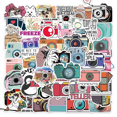 Material: papel e vinil Peso: 30-60 g Tamanho: 3-6 cm Quantidade: 50 unidades Tema de câmera retrô — Inclui 50 peças de adesivos fotográficos vintage coloridos, perfeitos para amantes da arte, fotógrafos e decoração criativa de bricolage. Material de vinil durável — Feito de vinil de PVC premium, impermeável e resistente ao desbotamento, fácil de descascar e remover sem deixar resíduos pegajosos. Ampla aplicação — Ótimo para laptops, diários, skates, garrafas de água, cadernos, guitarras, malas, álbuns de recortes e capas de telefone. Simples de usar — Aplicação peel-and-stick; reutilizável e reposicionável para facilitar a decoração em superfícies lisas. Estética criativa — Ideal para adolescentes, estudantes e adultos que gostam de adicionar um toque retrô e artístico aos itens do dia a dia.