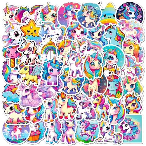 Material: papel e vinil Peso: 30-60 g Tamanho: 3-6 cm Quantidade: 50 unidades do tema Magical Unicorn — Inclui 50 adesivos exclusivos com unicórnios arco-íris, estrelas, nuvens e cores pastel sonhadoras para uma atmosfera divertida e extravagante. Vinil impermeável durável — Feito de vinil de PVC de alta qualidade com revestimento à prova d'água e resistente ao desbotamento, garantindo uso duradouro em diferentes superfícies. Decoração versátil — ideal para laptops, skates, capas de celular, notebooks, garrafas de água, álbuns de recortes, malas, iPads e muito mais. Perfeito para crianças e adolescentes — designs de unicórnios brilhantes e fofos são adequados para decorar material escolar, artesanato e acessórios pessoais. Fácil de descascar e sem resíduos — O adesivo forte adere com segurança, mas é removido de forma limpa, sem deixar resíduos pegajosos. Tema mágico de unicórnio — inclui 50 adesivos exclusivos com unicórnios arco-íris, estrelas, nuvens e cores pastel sonhadoras para uma atmosfera divertida e caprichosa. Vinil impermeável durável — Feito de vinil de PVC de alta qualidade com revestimento à prova d'água e resistente ao desbotamento, garantindo uso duradouro em diferentes superfícies. Decoração versátil — ideal para laptops, skates, capas de celular, notebooks, garrafas de água, álbuns de recortes, malas, iPads e muito mais. Perfeito para crianças e adolescentes — designs de unicórnios brilhantes e fofos são adequados para decorar material escolar, artesanato e acessórios pessoais.