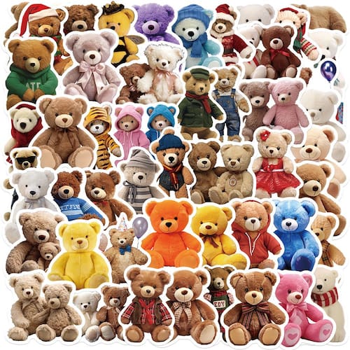 Material: papel e vinil Peso: 30-60 g Tamanho: 3-6 cm Quantidade: 50 unidades Tema adorável de ursinho de pelúcia 50 peças de adesivos de ursinho de pelúcia de desenho animado com desenhos de ursinhos de pelúcia em roupas coloridas, fazendo com que seus itens pareçam fofos, aconchegantes e estéticos. Material impermeável durável Feitos de vinil de PVC de alta qualidade, esses decalques são à prova d'água, à prova de sol e resistentes a rasgos, garantindo uma decoração duradoura em ambientes internos ou externos. Os adesivos autoadesivos fáceis de usar e removíveis aderem firmemente em superfícies lisas e podem ser removidos sem deixar resíduos pegajosos, perfeitos para mudanças frequentes de decoração. Ampla aplicação Ideal para laptops, telefones, skates, malas, álbuns de recortes, diários, garrafas de água e cadernos, adicionando uma atmosfera divertida e aconchegante em todos os lugares. Diversão para crianças e adolescentesOs padrões brilhantes de ursinhos de pelúcia atraem crianças, meninas e meninos; ótimos para projetos de bricolage, personalização de material escolar ou decoração de itens essenciais do dia a dia.