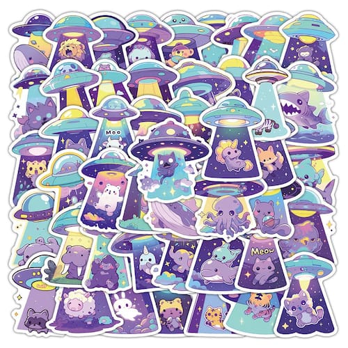 Pacote de adesivos Alien & UFO: inclui 50 adesivos de vinil com adoráveis OVNIs, alienígenas e animais fofos, todos com ilustrações vibrantes em estilo cartoon. Duráveis e à prova d'água: feitos de vinil de alta qualidade, esses adesivos são à prova d'água, resistentes a arranhões e perfeitos para personalizar garrafas de água, laptops, malas e muito mais. Desenhos divertidos e extravagantes: exibindo designs divertidos com animais sendo “abduzidos” por OVNIs, esses adesivos dão uma atmosfera cósmica divertida a qualquer item. Ideal para personalização: ótimos para decorar cadernos, álbuns de recortes, capas de celular e outras superfícies lisas, esses adesivos trazem criatividade e diversão à sua vida diária. Perfeitos para entusiastas do espaço e de OVNIs: indispensáveis para fãs de alienígenas, OVNIs e do espaço sideral, esses adesivos são perfeitos para expressar o amor por todas as coisas extraterrestres e peculiares.
