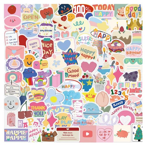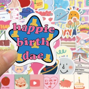 Material: papel e vinil Peso: 30-60 g Tamanho: 3-6 cm Quantidade: 90 unidades 90 peças O adesivo de aniversário contém 90 decalques de vinil exclusivos com elementos de aniversário, como bolos, balões, velas, corações e citações alegres em estilo de desenho animado pastel. Impermeáveis e duráveis Feitos de material de vinil impermeável premium, esses adesivos são resistentes ao sol, à prova de rasgos e reutilizáveis sem deixar resíduos pegajosos. Estética moderna de desenho animado Projetada com tons pastel coloridos e padrões divertidos, perfeita para temas de aniversário, decorações de festas e artesanato DIY. Decoração multiuso Ótima para decorar laptops, capas de telefone, diários, garrafas de água, álbuns de recortes, malas, skates, guitarras e muito mais. Diversão para todas as idades. Ideal para crianças, adolescentes e adultos que gostam de personalizar itens com lindos decalques temáticos para festas.