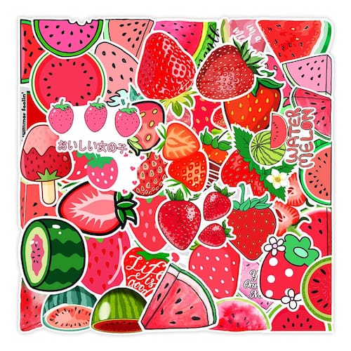 Material: papel e vinil Peso: 30-60 g Tamanho: 3-6 cm Quantidade: 50 unidades Tema de morango e melancia — Inclui morangos vermelhos brilhantes, fatias suculentas de melancia, bebidas de frutas e personagens de desenhos animados kawaii para uma atmosfera divertida de verão. Material de vinil impermeável — Feitos de vinil durável, esses decalques são à prova d'água, resistentes ao sol e não deixam resíduos pegajosos quando removidos. Amplas aplicações de bricolage — Perfeitas para decorar laptops, cadernos, álbuns de recortes, capas de celular, skates, malas, geladeiras e garrafas de água. Estilo fofo de desenho animado — combina ilustrações kawaii com padrões de frutas realistas, adequados para crianças, adolescentes e amantes de frutas. 50 designs exclusivos — Cada pacote inclui 50 adesivos diferentes, tornando-o ideal para decoração DIY, diário e projetos criativos.