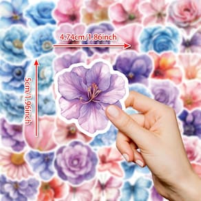 Material: papel e vinil Peso: 30-60 g Tamanho: 3-6 cm Quantidade: 50 unidades Lindos desenhos florais — Inclui 50 peças de adesivos com rosas, margaridas, hortênsias e flores em tons de aquarela rosa, roxo e azul com detalhes adicionais de borboleta. Impermeáveis e duráveis — Feitos de vinil premium, esses decalques são à prova d'água, resistentes a arranhões e à prova de desbotamento, garantindo cores brilhantes de longa duração. Perfeito para decoração DIY — Ótimo para álbuns de recortes, diários, agendas, papelaria, álbuns de fotos e cartões, dando aos seus projetos uma estética botânica elegante. Ampla faixa de aplicação — Adequado para laptops, telefones, guitarras, skates, canecas, garrafas de água e malas; fácil de aplicar e remover sem deixar resíduos. Fácil de usar e reposicionar — adesivos autoadesivos de vinil descascam e colam suavemente, divertidos para adolescentes e adultos que gostam de decorações florais criativas.