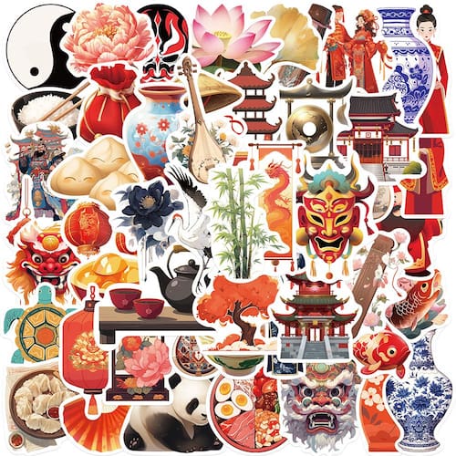 Material: papel e vinil Peso: 30-60 g Tamanho: 3-6 cm Quantidade: 50 unidades de elementos orientais ricos — Inclui 50 designs em estilo chinês, como lótus, bambu, peixes koi, lanternas, guindastes, panda, arquitetura e símbolos culturais, perfeitos para decoração criativa de bricolage. Vinil impermeável de alta qualidade — Fabricado com vinil durável e impermeável que resiste ao desbotamento, rasgos e descamação, tornando-os duradouros para uso interno e externo. DIY Creative Freedom — Ótimo para decorar laptops, garrafas de água, álbuns de recortes, cadernos, diários, skates, guitarras, malas e adicionar um toque cultural único. Fácil de descascar e colar — A forte adesão garante que os adesivos permaneçam firmes em superfícies lisas, enquanto a remoção sem resíduos mantém os itens limpos quando você decide reposicionar ou substituir. Perfeito para todas as idades — Adequado para estudantes, adolescentes e adultos que amam a cultura chinesa, a arte tradicional ou desejam personalizar itens do dia a dia com decalques de vinil exclusivos.