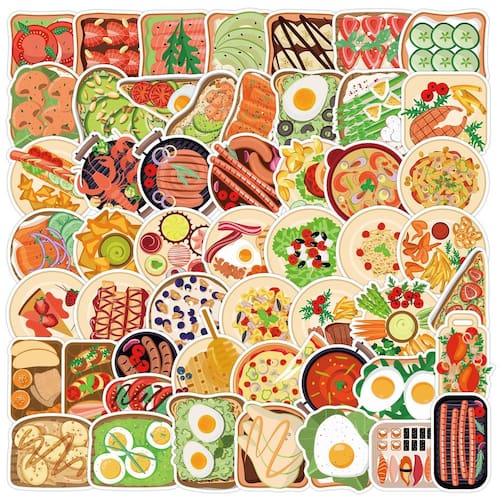 Material: papel e vinil Peso: 30-60 g Tamanho: 3-6 cm Quantidade: 50 unidades A variedade com tema gastronômico Inclui 50 peças de adesivos coloridos com torradas, sanduíches, saladas, macarrão, ovos e designs inspirados no café da manhã, adicionando diversão a qualquer superfície. Vinil de alta qualidade Feito de vinil de PVC durável à prova d'água, resistente à luz solar e arranhões, garantindo padrões vívidos de longa duração. Ampla aplicação. Perfeito para decorar laptops, garrafas de água, diários, álbuns de recortes, capas de telefone, malas, skates, geladeiras e muito mais. A aplicação Peel-and-Stick fácil de usar torna a decoração rápida e descomplicada, removível sem deixar resíduos pegajosos. Creative DIY FunIdeal para estudantes, professores e amantes da comida personalizarem pertences com designs estéticos e divertidos de decalques de comida.