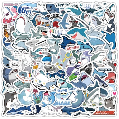Desenhos engraçados com temas de tubarões — Inclui 100 ilustrações únicas e hilárias de tubarões com expressões inteligentes, ideais para fãs de animais marinhos e gráficos engraçados. Vinil impermeável premium — Feito de vinil impermeável durável que é resistente a rasgos e à prova de sol, garantindo uso duradouro em laptops, garrafas de água, notebooks e muito mais. Fácil de aplicar e remover — os adesivos se soltam suavemente e aderem bem à maioria das superfícies planas, sem deixar resíduos pegajosos após a remoção. Ótimo para personalizar itens — perfeito para decorar telefones, skates, diários, copos, malas, capacetes e muito mais — adiciona diversão e personalidade ao seu equipamento. Seguro para todas as idades — Adequado para crianças, adolescentes e adultos que amam tubarões ou desejam adicionar um toque marinho humorístico aos seus itens do dia a dia.