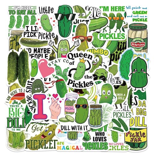 Material: papel e vinil Peso: 30-60 g Tamanho: 3-6 cm Quantidade: 50 unidades 🥒 Tema humorístico de picles — apresenta personagens engraçados de picles, vegetais de desenhos animados e designs de texto espirituosos como “Big Dill” e “Dill With It”. Material impermeável durável — Feito de vinil à prova d'água, garantindo uso duradouro, resistente a arranhões e desbotamento e fácil de remover sem deixar resíduos. Amplas aplicações — Decalques perfeitos para decorar laptops, garrafas de água, skates, diários, guitarras, capas de celular, malas e álbuns de recortes. Diversão para adolescentes e adultos — Uma coleção divertida criada para amantes do humor, ideal para personalizar itens ou compartilhar como recompensas criativas. 50 peças exclusivas — Cada pacote inclui 50 adesivos de vinil diferentes, oferecendo variedade para decorações e coleções diárias de bricolage.