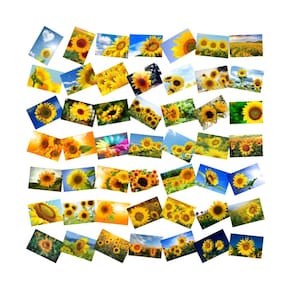 Material: papel e vinil Peso: 30-60 g Tamanho: 3-6 cm Quantidade: 50 unidades50 unidades de adesivos de vinil de girassol com desenhos realistas de girassol em estilo fotográfico com pétalas amarelas brilhantes e fundos cênicos vívidos. Feito de PVC premium com revestimento impermeável e resistente ao sol, garantindo durabilidade duradoura sem desbotar ou descascar. Fácil de descascar e colar, removível sem resíduos pegajosos, perfeito para laptops, telefones, notebooks, skates, guitarras, geladeiras e malas. Desenhos alegres de girassol trazem uma atmosfera natural e inspiradora, adequada para crianças, adolescentes e adultos que amam decorações com temas florais. Ótimo para anotações, agendas, álbuns de recortes, artesanato e personalização de acessórios do dia a dia com uma estética realista de girassol.