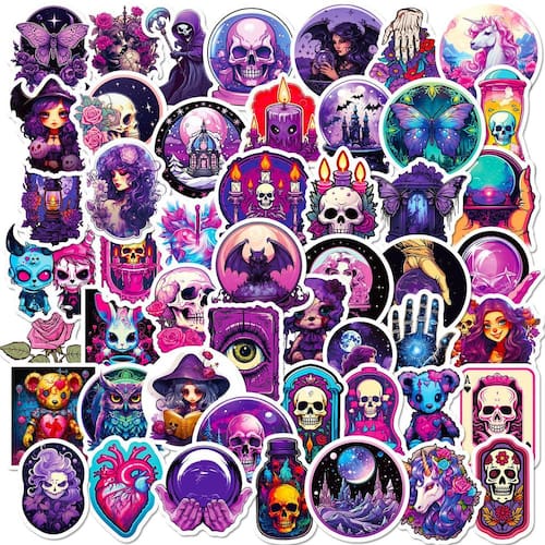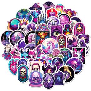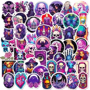 Material: papel e vinil Peso: 30-60 g Tamanho: 3-6 cm Quantidade: 50 unidades Estilo roxo gótico 50 peças de adesivos com caveiras, bruxas, morcegos, borboletas, bolas de cristal, velas, rosas e designs inspirados na fantasia mística em tons de roxo e neon gótico. Vinil de alta qualidade Feito de vinil de PVC durável à prova d'água, resistente a arranhões e à prova de desbotamento, adequado para decoração interna e externa. Fácil de aplicar. Suporte adesivo forte, para uso descascado e colado, removível sem resíduos pegajosos, reutilizável na maioria das superfícies lisas e limpas. Decalques Creative DIY UsePerfect para laptops, telefones, diários, álbuns de recortes, guitarras, skates, garrafas de água, malas e cadernos. Ideal para adolescentes e adultosAdesivos estéticos góticos exclusivos projetados para entusiastas de bricolage, estudantes e fãs de fantasia sombria ou arte inspirada no Halloween.