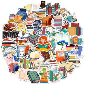 Pacote de adesivos, leitura de livros, anime, vinil impermeável, 50 unidades