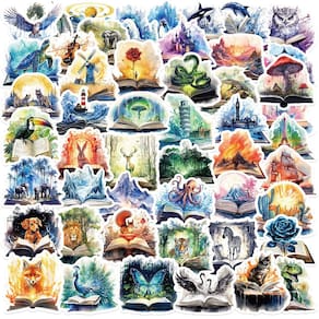Material: papel e vinil Peso: 30-60 g Tamanho: 3-6 cm Quantidade: 50 unidades do tema Magical Storybook 50 adesivos exclusivos criados com ilustrações criativas inspiradas em livros, incluindo animais, paisagens, oceanos, castelos, planetas e elementos de fantasia surgidos de livros abertos. Vinil impermeável durável Feitos de material de PVC impermeável de alta qualidade, esses decalques são resistentes ao desbotamento, ao rasgo e à umidade, garantindo uma decoração duradoura em ambientes internos e externos. Fácil de usar Cada adesivo tem forte aderência, adere com segurança à maioria das superfícies lisas e pode ser removido sem deixar resíduos pegajosos, perfeito para projetos diários de decoração DIY. Amplas aplicações. Ótimo para personalizar laptops, skates, garrafas de água, diários, álbuns de recortes, capas de telefone, malas e muito mais, adequado para estudantes, adolescentes e adultos criativos. Creative & Aesthetic traz uma vibração artística mágica aos seus itens, fazendo com que se destaquem com ilustrações coloridas e sonhadoras que inspiram imaginação e narrativa.
