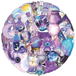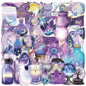 Material: papel e vinil Peso: 30-60 g Tamanho: 3-6 cm Quantidade: 50 unidades Mystical Witch Aesthetic 50 peças de adesivos com temas mágicos, como gatos lunares, frascos de poções, bolas de cristal, planetas, flores, estrelas e livros místicos. PET premium com brilho Feito de PET com revestimento brilhante, oferecendo um acabamento mágico brilhante que é à prova d'água, resistente a rasgos e durável. Fácil de usar Descasque e cole sem esforço, forte adesão em superfícies planas, removível sem resíduos pegajosos, ideal para adolescentes e adultos. Decoração para todas as ocasiões. Ótima para laptops, diários, garrafas de água, cadernos, malas, álbuns de recortes, capas de celular, espelhos e muito mais. Perfeito para amantes de magia Projetado para aqueles que amam a estética celestial, cósmica, bruxa ou inspirada na astrologia em acessórios diários.
