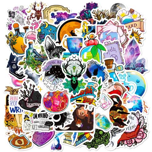 Material: papel e vinil Peso: 30-60 g Tamanho: 3-6 cm Quantidade: 50 peças Tema mágico medieval 50 peças de adesivos de fantasia com poções, livros de feitiços, luas, cristais, corujas, animais místicos e elementos medievais encantadores. Material de vinil durável Feito de vinil impermeável e resistente ao sol, projetado para durar muito tempo, mantendo cores vibrantes e detalhes artísticos. O design peel-and-stick fácil de usar, removível sem deixar resíduos, funciona melhor em superfícies lisas e limpas, como laptops, garrafas de água e notebooks. Decoração criativa DIY Perfeita para diários, capas de telefone, skates, guitarras, álbuns de recortes e malas, tornando seus itens únicos e cheios de personalidade. Para adolescentes e amantes da fantasia, um conjunto de adesivos estéticos criado para estudantes, entusiastas da bruxaria e qualquer pessoa que goste de arte medieval, magia e decoração extravagante.