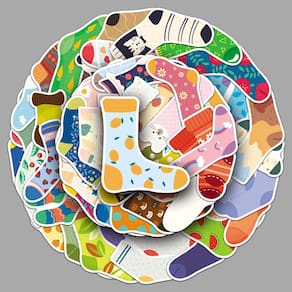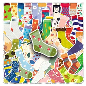 Desenhos adoráveis com temas de meias — Inclui 50 meias em estilo de desenho animado com designs divertidos, como frutas, listras, animais, padrões e motivos sazonais, cheios de cores e diversão. Material de vinil impermeável premium — Feitos de vinil de alta qualidade, esses decalques são à prova d'água, resistentes ao desgaste e adequados para uso interno e externo em várias superfícies. Tamanho compacto e versátil — Cada adesivo mede entre 5 e 8 cm, o que os torna ideais para decorar diários, laptops, garrafas, capas de celular, espelhos ou agendas. Fácil de usar e remover — Projetados para serem convenientes, esses adesivos se desprendem facilmente e não deixam resíduos pegajosos, perfeitos para reposicionar ou mudar seu estilo. Estética criativa e extravagante — Ótima para amantes de bricolage e usuários de diários que gostam de adicionar uma atmosfera colorida, aconchegante e alegre aos itens do dia a dia.