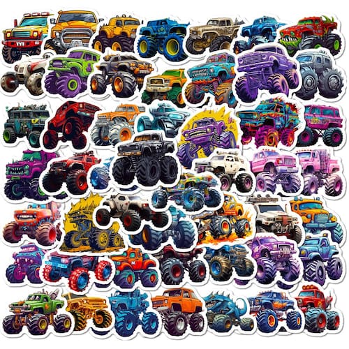 Pacote de adesivos Monster Trucks Anime Waterproof Vinyl 50 unidades