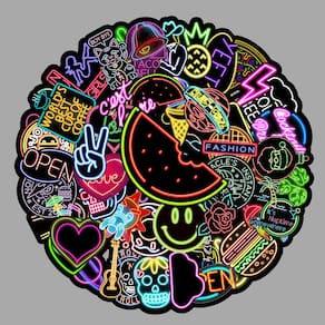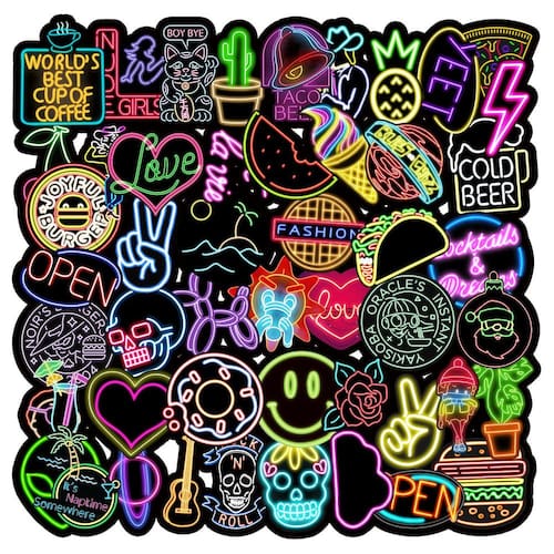 50 adesivos exclusivos de luz de néon — Este pacote inclui 50 adesivos criativos inspirados em luzes de néon e grafite, oferecendo uma forma vibrante e ousada de decorar seus itens pessoais. Design brilhante e colorido — Com divertidos efeitos de brilho neon, esses adesivos são perfeitos para adicionar um toque de cor e energia ao seu laptop, garrafa de água ou qualquer outra superfície. Duráveis e impermeáveis — Feitos de vinil de alta qualidade, esses decalques são à prova d'água, garantindo que permaneçam vibrantes e intactos em seus pertences, mesmo quando expostos à água ou às intempéries. Uso versátil — Ideal para personalizar laptops, capas de celular, notebooks, skates, malas e muito mais. Use-os para expressar seu estilo com uma mistura de designs modernos, como tacos, caveiras e carinhas sorridentes. Fácil de aplicar e remover — Esses adesivos podem ser facilmente aplicados em superfícies lisas e removidos sem deixar resíduos, tornando-os perfeitos para projetos de bricolage ou decorações temporárias.