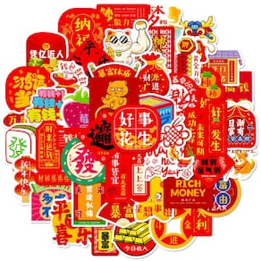 Material: papel e vinil Peso: 30-60 g Tamanho: 3-6 cm Quantidade: 50 unidades 🧧 Tema do Ano Novo Chinês — Inclui 50 adesivos de vinil coloridos com símbolos tradicionais, como envelopes vermelhos, personagens divertidos, gatos sortudos, lanternas e desenhos festivos em chinês. Qualidade de vinil durável — Feitos com material de PVC impermeável premium, esses decalques são resistentes a arranhões, à prova de desbotamento e laminados para cores vermelhas e douradas de longa duração. Uso decorativo versátil — perfeito para decorar laptops, notebooks, janelas, capas de telefone, diários, álbuns de recortes, garrafas de água e malas com designs vibrantes de Ano Novo. Para todas as idades e ocasiões — O estilo divertido e festivo agrada a crianças, adolescentes e adultos, ótimo para adicionar alegria sazonal ao material escolar, decoração de festas e artesanato DIY. Fácil de aplicar e remover — os adesivos autoadesivos grudam com firmeza, mas podem ser removidos sem deixar resíduos, o que os torna ideais para decoração temporária de festivais e projetos criativos durante todo o ano.