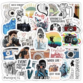 Material: papel e vinil Peso: 30-60 g Tamanho: 3-6 cm Quantidade: 54 unidadesDesigns inspirados em fotografia — Apresenta adesivos criativos com câmeras, lentes, fotógrafos e citações artísticas de fotografia, perfeitos para amantes da fotografia. Duráveis e impermeáveis — Feitos de vinil premium, esses decalques são à prova d'água, resistentes ao desbotamento e à prova de arranhões, proporcionando cores vibrantes de longa duração. Amplas aplicações — Ideal para decorar laptops, garrafas de água, álbuns de recortes, skates, cadernos, capas de telefone e malas de viagem. Fácil de descascar e colar — A forte adesão garante que os adesivos permaneçam no lugar, mas podem ser removidos facilmente sem deixar resíduos pegajosos. Diversão criativa de bricolage — Ótima para adolescentes, adultos e entusiastas da fotografia personalizarem e personalizarem itens pessoais com decalques exclusivos com temas fotográficos. Designs inspirados em fotografia — Apresenta adesivos criativos com câmeras, lentes, fotógrafos e citações artísticas de fotografia, perfeitos para amantes da fotografia. Duráveis e impermeáveis — Feitos de vinil premium, esses decalques são à prova d'água, resistentes ao desbotamento e à prova de arranhões, proporcionando cores vibrantes de longa duração. Amplas aplicações — Ideal para decorar laptops, garrafas de água, álbuns de recortes, skates, cadernos, capas de telefone e malas de viagem. Fácil de descascar e colar — A forte adesão garante que os adesivos permaneçam no lugar, mas podem ser removidos facilmente sem deixar resíduos pegajosos.