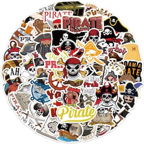 Pacote de adesivos piratas: inclui 50 adesivos de vinil de alta qualidade com uma variedade de designs com temas piratas, como caveiras, navios piratas e citações famosas de piratas.2. Duráveis e impermeáveis: feitos de vinil premium, esses decalques são à prova d'água, resistentes às intempéries e perfeitos para decorar bagagens, guitarras, garrafas de água, cadernos e muito mais.3. Desenhos piratas divertidos: com gráficos piratas divertidos e ousados no estilo de desenho animado, esses adesivos são ideais para fãs de piratas, com símbolos como ossos cruzados, baús de tesouro e imagens icônicas de piratas.4. Ideal para personalização: perfeito para adicionar um toque pessoal aos seus pertences pessoais, incluindo sua bagagem, álbuns de recortes, guitarras, capas de telefone e muito mais.5. Ótimos para entusiastas de piratas: indispensáveis para quem adora piratas, aventura e alto mar, esses adesivos são uma ótima maneira de expressar seu amor pela cultura pirata.