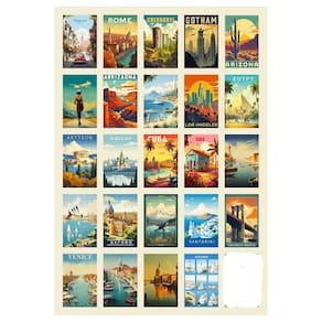 Material: papel e vinil Peso: 30-60 g Tamanho: 3-6 cm Quantidade: 50 unidades Tema do pôster World Travel — Inclui 50 adesivos exclusivos inspirados em pôsteres de viagem antigos, com paisagens, cidades famosas e destinos icônicos. Adesivos de vinil premium — feitos de vinil impermeável de alta qualidade, resistentes a arranhões, desbotamento e luz solar, garantindo cores vibrantes e durabilidade. Aplicações versáteis — Decalques perfeitos para laptops, diários, garrafas de água, skates, malas, guitarras, capas de telefone, geladeiras, carros e projetos de artesanato DIY. Forte adesão e sem resíduos — os adesivos grudam firmemente em superfícies lisas, mas podem ser removidos sem deixar resíduos pegajosos, tornando-os reutilizáveis. Ideal para adolescentes e adultos — Uma forma criativa de personalizar pertences com designs retrô cênicos, ótimos para registrar no diário, decorar e fazer projetos estéticos de bricolage.