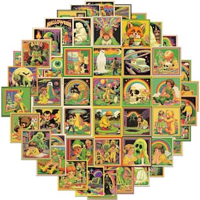 Material: papel e vinil Peso: 30-60 g Tamanho: 3-6 cm Quantidade: 50 unidades de estilo retrô em quadrinhos — Inclui 50 peças de adesivos exclusivos com ilustrações vintage de desenhos animados americanos com Halloween, arco-íris, animais e ilustrações surreais. Vinil impermeável durável — Feitos de vinil de PVC impermeável premium, esses decalques são resistentes ao sol, à prova de desbotamento e adequados para decoração interna ou externa. Pacote DIY criativo — perfeito para personalizar laptops, álbuns de recortes, diários, skates, malas, capas de celular e garrafas de água com arte ousada em estilo de quadrinhos. Diversão para adolescentes e adultos — Seguro e fácil de usar, ótimo para estudantes, artistas e colecionadores que amam designs retrô, góticos ou psicodélicos. Remoção sem resíduos — Os adesivos autoadesivos são aplicados suavemente, grudam com firmeza e descascam sem deixar resíduos pegajosos para reutilização sem complicações.