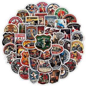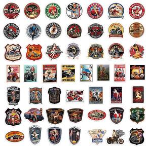 Pacote de adesivos Retro Motorcycle Sexy Beauty Anime Water 50 unidades
