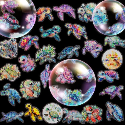 Material: papel e vinil Peso: 30-60 g Tamanho: 3-6 cm Quantidade: 50 unidades Adorável tema de tartaruga: inclui 50 adesivos exclusivos com tartarugas marinhas coloridas em estilos artísticos e de desenhos animados fofos, perfeitos para amantes do oceano. Impermeável e durável: feito de adesivos de vinil de alta qualidade que são à prova d'água, resistentes ao sol e à prova de desbotamento para uso confiável a longo prazo. Decoração criativa de bricolage: ótima para personalizar laptops, capas de telefone, skates, malas, garrafas de água, diários e álbuns de recortes. Para crianças e adolescentes: decalques divertidos de animais marinhos adequados para recompensas escolares, artesanato de bricolage e projetos criativos para crianças e adolescentes. Fácil de usar e remover: os decalques autoadesivos descascam suavemente, aderem firmemente à maioria das superfícies e podem ser removidos sem deixar resíduos.