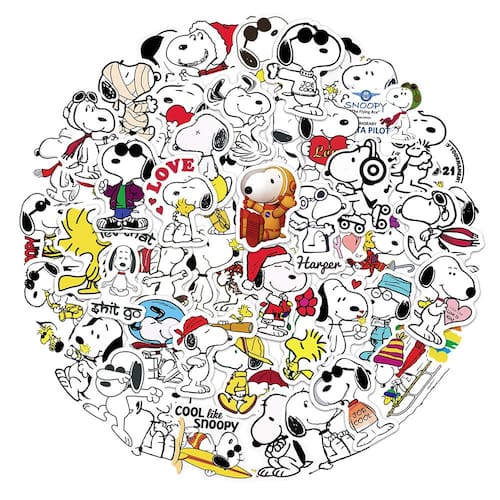 Pacote de adesivos Snoopys Anime, vinil impermeável, 50 unidades para bricolage