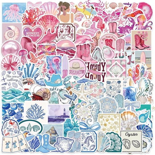Material: papel e vinil Peso: 30-60 g Tamanho: 3-6 cm Quantidade: 100 unidades do tema Coastal Ocean — Inclui 100 adesivos inspirados no litoral com detalhes em conchas marinhas, corais, medusas, golfinhos, ondas, estrelas do mar e cowgirl costeira. Vinil impermeável durável — Feitos de material de vinil premium, esses decalques são à prova d'água, resistentes a arranhões e removíveis sem deixar resíduos nas superfícies. Variedade de designs de verão — apresenta tons de rosa e azul com animais marinhos, paisagens de praia, padrões oceânicos e conchas decorativas para uma atmosfera refrescante de verão. Ampla aplicação — Perfeito para decorar laptops, telefones, diários, skates, álbuns de recortes, garrafas de água, malas e muito mais. Para adolescentes e adultos — Um pacote de adesivos criativo criado para escrever em diários, decorar com você mesmo e qualquer pessoa que adore a estética costeira e o estilo praiano de verão.