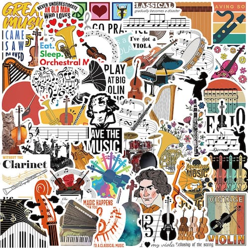 Material: papel e vinil Peso: 30-60 g Tamanho: 3-6 cm Quantidade: 50 unidades Coleção com tema de piano Inclui 50 peças de adesivos exclusivos com pianos de cauda, teclados, partituras e elementos musicais, perfeitos para amantes e estudantes de piano. Material de vinil durável Feitos de vinil de alta qualidade, esses decalques são à prova d'água, resistentes a arranhões e removíveis sem deixar resíduos pegajosos. Decoração versátil Ideal para decorar laptops, cadernos, garrafas de água, capacetes, skates, malas, capas de telefone e álbuns de recortes. Designs elegantes e coloridos A mistura de teclas clássicas em preto e branco e arte vibrante de piano dá aos seus itens um toque criativo e musical. Fácil de descascar e colar. Precut para uma aplicação rápida, basta descascar e colar para personalizar seu equipamento ou usar como recompensas divertidas em sala de aula.