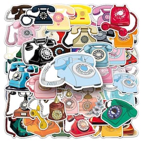 Tema de telefone vintage — apresenta 50 decalques de vinil de inspiração retrô com uma variedade de mostradores giratórios e ilustrações clássicas de telefone em cores vibrantes e estilos divertidos de desenho animado. Vinil durável e à prova d'água — Feitos de vinil de alta qualidade, esses decalques são à prova d'água, à prova de sol e resistentes a arranhões, o que os torna adequados para uso interno ou externo. Diversão para projetos de bricolage — Perfeito para decorar diários, laptops, capas de celular, skates, garrafas de água, álbuns de recortes e muito mais, adicionando um charme nostálgico aos seus itens. Variedade de cores chamativa — Inclui vários estilos de telefone em um arco-íris de cores — rosa, azul, verde, vermelho, amarelo e muito mais — para uma estética alegre e eclética. Fácil de usar e remover — Cada peça varia de 5 a 8 cm de tamanho, com forte adesão, mas fácil de remover, sem deixar resíduos pegajosos na maioria das superfícies.