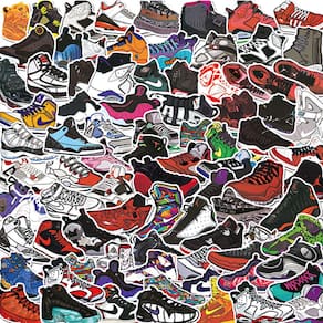 Material: papel e vinil Peso: 30-60 g Tamanho: 3-6 cm Quantidade: 100 unidades Coleção temática de tênis 50 adesivos exclusivos inspirados em tênis com sapatos de desenho animado coloridos e modernos que destacam o vestuário urbano e a estética esportiva. Material de vinil premium Feitos de vinil de PVC impermeável de alta qualidade, esses decalques são resistentes ao sol, à prova de rasgos e de longa duração para uso interno e externo. Aplicação em várias superfícies. Perfeita para decorar laptops, garrafas de água, skates, malas, capas de telefone, diários, álbuns de recortes, bicicletas e muito mais. Fácil de colar e remover. O adesivo garante que os adesivos permaneçam firmes no lugar, sem deixar resíduos pegajosos quando removidos, mantendo seus itens limpos. Escolha criativa para adolescentes e adultosIdeal para amantes de tênis, fãs de streetwear e projetos criativos de bricolage, aprimorando seus acessórios com vibrações divertidas de tênis.