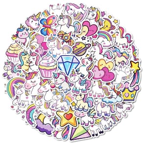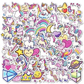 Material: papel e vinil Peso: 30-60 g Tamanho: 3-6 cm Quantidade: 50 unidades O pacote de adesivos de unicórnio Inclui 50 peças de adesivos de unicórnio com desenhos de arco-íris, cupcake, coração e estrela, adicionando um toque mágico aos seus itens com estilo de desenho animado pastel. Material de vinil durável Feitos de vinil à prova d'água de alta qualidade, esses decalques resistem a arranhões e desbotamento, garantindo uso duradouro em laptops, skates, garrafas de água e muito mais. Fácil de aplicar e remover. Os adesivos autoadesivos grudam firmemente em superfícies lisas, mas descascam sem deixar resíduos pegajosos, perfeitos para decoração de bricolage. Decoração versátil. Ótima para personalizar telefones, tablets, guitarras, capacetes, diários, cadernos, malas, álbuns de recortes ou projetos de artesanato infantil. Diversão para crianças e adolescentesOs designs brilhantes em kawaii incentivam a criatividade, tornando esses adesivos de unicórnio ideais para material escolar, coleções pessoais ou atividades de festas.