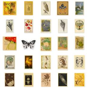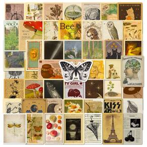 Estilo de arte estética retrô — Este pacote de 50 apresenta elementos vintage nostálgicos, como desenhos botânicos, gráficos cósmicos, borboletas, pôsteres retrô, cogumelos, animais e ilustrações clássicas, ideais para amantes de diários e colagens. Vinil impermeável durável — Feitos de vinil de alta qualidade, esses adesivos são à prova d'água, resistentes a rasgos e fáceis de remover sem deixar resíduos pegajosos, adequados para uso a longo prazo. Uso decorativo versátil — perfeito para decorar diários, cadernos de viagem, álbuns de recortes, laptops, garrafas de água, capas de telefone, malas e muito mais. Ótimo para entusiastas da estética e projetos criativos de bricolage. Paleta de cores de inspiração vintage — inclui tons de terra, ilustrações desbotadas e tons sépia que refletem a essência do charme do velho mundo e as coisas efêmeras do estilo europeu. Fácil de descascar e colar — Cada decalque é pré-cortado e pronto para uso. Basta limpar a superfície, descascar o suporte e colar onde quiser para adicionar um toque de expressão vintage.