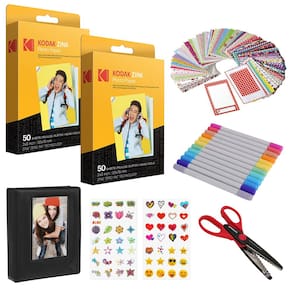 Kodak Pacote com 100 scrapbook de papel Zink premium, 5 x 7,5 cm - Detalhes incrivelmente vibrantes – Papel fotográfico de qualidade premium recria todas as cores e momentos memoráveis com detalhes excepcionais e brilhantes. Cada imagem apresenta uma integridade de cor notável que é perfeita para imprimir fotos de smartphones ou fotos de redes sociais - Fotos – o papel zink elimina a necessidade de filmes caros e desperdício de cartuchos. A tecnologia Zero ink é uma solução de impressão natural que é fácil de carregar em sua câmera e imprimir em uma única passagem - Impressões à prova de vida – o papel zink é tratado com um sobretudo de polímero protetor brilhante que é resistente à água, resistente a rasgos, à prova de manchas e seco ao toque - Memórias que duram uma vida inteira – especialmente feitas para serem impressões de zink de longa duração são resistentes ao desbotamento mesmo quando expostas ao calor leve e à umidade - O que você recebe 100 folhas Kodak 5 x 3 pol. Papel ZINK 12 marcadores, pacote com 100 adesivos de borda para fotos, 6 tesouras de borda decorativas, conjunto de 50 adesivos 6 fitas Washi