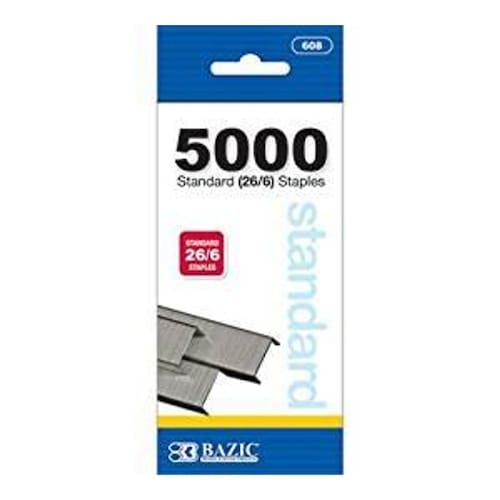 Grampos BAZIC 5000 Ct Standard (26/6), pacote com 24- 608-24- Agrafes padrão BAZIC 5000 Ct (26/6)- Pacote de estojos 24