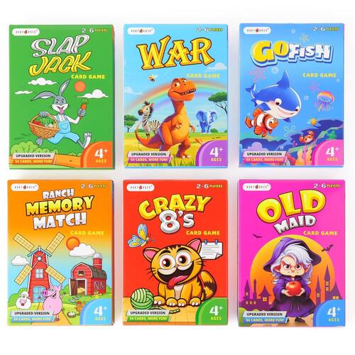 Este baralho de cartas atualizado certamente proporcionará horas de aprendizado e entretenimento. Com 54 cartas por conjunto em 6 temas lindamente ilustrados, as crianças podem expandir seus conhecimentos sobre animais, vida marinha, plantas e trabalhos de uma maneira envolvente. Cada tema introduz novos conceitos enquanto estimula o desenvolvimento cognitivo. Além dos jogos de memória tradicionais, cartas de estratégia foram adicionadas para aumentar o desafio e a diversão. As crianças vão se divertir combinando cartas e aprendendo novos fatos que a hora de brincar parecerá brincadeira. Com construção de qualidade e gráficos encantadores, este jogo de cartas é um ótimo brinquedo educativo adequado para toda a família desfrutarem juntos. Torna o aprendizado uma aventura emocionante! - Versão atualizada: atualizado para 54 cartas por baralho. Cada jogo também vem com nossas versões seniores originalmente criadas com cartas de função que adicionam uma camada extra de estratégia e emoção aos seus jogos favoritos. - Qualidade premium: cartas de tamanho de pôquer padrão criadas com papel premium revestido 30% mais espesso para um jogo ultradurável e mais confortável. - 6 temas lindamente ilustrados: cada um projetado para apresentar às crianças novos conceitos e expandir seus conhecimentos, desde animais de pastagens, vida marinha, vegetais a frutas e ocupações. - Aprenda com diversão: cada um dos 6 jogos educativos é cuidadosamente criado para estimular diferentes habilidades cognitivas, ajudando as crianças a desenvolver sua reação, padrões de pensamento, numeração, estratégia e habilidades cognitivas gerais. - Entretenimento em movimento: cada jogo é embalado individualmente. Você pode levar a diversão para qualquer lugar com este pacote de jogo de cartas portátil que cabe no seu bolso. Estes jogos de cartas adoráveis e envolventes são os lembrancinhas de festa, presentes de aniversário, enfeites de meias e prêmios de sala de aula.