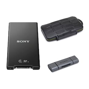 Pacote de leitor de cartão de memória Sony MRWG2 CFexpress tipo A/SD com estojo de armazenamento de memória robusto PRO e leitor de cartão SD OTG de slot duplo PRO 2 em 1 Aluminium Shell (3 itens)