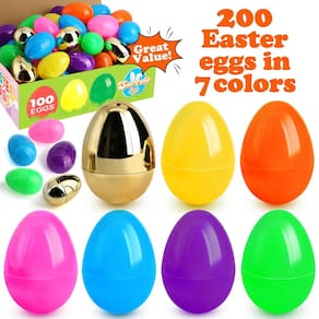 - [6 ovos dourados surpresas] 200 pacotes de ovos de Páscoa coloridos incluem 200 peças de cores diversas brilhantes em (32 laranjas, 32 vermelhas rosas, 33 amarelas, 33 verdes, 32 azuis, 32 roxas e 6 glod). Perfeito para todas as crianças, tanto para meninas quanto para meninos!