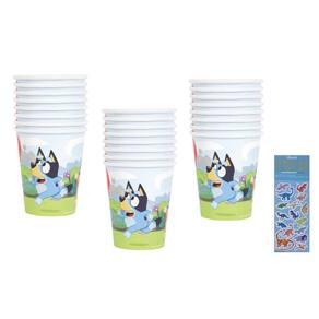 O pacote de suprimentos para festas de aniversário Bluey inclui 24 copos de papel de 9 onças e 1 folha de adesivo de dinossauro. - O pacote de suprimentos para festas de aniversário Bluey inclui: - 24 copos de papel de 9 onças - 1 folha de adesivo de dinossauro.