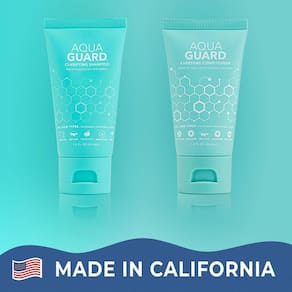 6 unidades de 0,5 pacotes de AquaGuard Pre-Swim Hair Defense - O AquaGuard mantém seu cabelo brilhante e forte. Projetado pensando em nadadores frequentes, o AquaGuard mantém o cabelo protegido da secura, fragilidade, embotamento, desbotamento e coloração verde decorrentes de exercícios prolongados na água! 1 unidade de condicionador diário AquaGuard de 1,5 oz para mães e nadadoras de piscina 1 unidade de shampoo clareador suave AquaGuard de 1,5 onças - Shampoo AquaGuard AfterSwim 1 unidade de desembaraçador UV AquaGuard After-Swim de 1,5 onças - Elimina emaranhados, nós e frizz após nadar - Como usar: Usar o AquaGuard é fácil! Basta umedecer o cabelo antes de nadar e aplicar uma quantidade generosa de proteção capilar antes da natação, prestando atenção especial às pontas. Aguarde de 3 a 5 minutos para que o produto seja completamente absorvido pelo cabelo. - Detangulador UV Leave-In AquaGuard After-Swim - Use em conjunto com o AquaGuard Pre-Swim Hair Defense para proteção contra produtos químicos e raios UV antes, durante e depois de nadar - os produtos AquaGuard são veganos e livres de crueldade. Eles não contêm parabenos ou ftalatos. - Mantém a saúde do cabelo.
