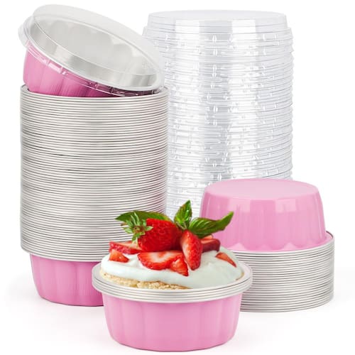 Beasea Pacote com 100 copos descartáveis de 236 ml com tampas - ?Tamanho perfeito? Capacidade de 235 ml (cerca de 227 g), comprimento superior de 10,9 cm com tampa, comprimento inferior de 8,9 cm, altura de 5 cm com tampa, tamanho perfeito para oferecer diferentes tipos de sobremesas para uma porção única. Cada copo vem com tampa, e existem várias opções de cores, oferecendo mais opções para você. - ?Material premium?Feito de material de folha de alumínio agradável e resistente de qualidade premium, condução de calor mais rápida, mais leve e fácil de assar. - ?Uso conveniente?Com o material de folha de alumínio de boa qualidade que é projetado para padaria, você pode colocar diretamente o copo de cozimento no fogo para usar (mas não coloque os copos vazios no fogo), com condução de calor mais rápida para usar menos energia. 227 g para cada panela com tampa, é uma boa maneira de servir porções individuais para convidados na reunião. - ?Multifunção?1 copo de alumínio com 2 aplicações, é um molde de cozimento e também uma bela embalagem, não precisa desmoldar e muito conveniente para servir. - ?Todas as ocasiões?Os copos de alumínio Beasea são adequados para a maioria dos tipos de ocasiões, brownies, muffins, tortas de maçã, pudins, cupcakes, bolos de queijo, etc. Com uma capacidade adequada, estes lindos copos são de bom tamanho para uma única porção de sobremesas para diferentes eventos, festas para trazer felicidade a todos.