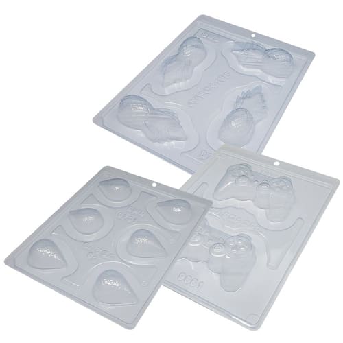 Forma especial com silicone 3 partes , ideal para produção de chocolates com muito mais praticidade e precisão. Abaixo mais informações do produto. Pacote com 1 forma coxinha 6 cavidades 1 forma Joystick 2 cavidades 1 Forma Abacaxi 4 cavidades Medidas mm coxinha Comp.: 50 x Larg.: 39 x Alt.: 17 Cavidade cm : Alt 2, Comp 5, Larg 4 Peso Casquinha: 8g Peso Médio: 35g Medidas Cm Joy Stick Medida da forma: 24 x 18.5 x 2.2 cm Cavidade: Comprimento: 9,5cm x Largura: 6cm Peso Casquinha: 28g. Medidas Abacaxi Abacaxi: Largura: 3,6cm x Altura: 8cm Gramagem: Casca 16g. Quantidade de cavidades: 4 Cavidades. Marca: Não Informado