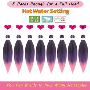 Cabelo trançado preto e roxo e rosa pré-esticado 45,72 cm, 8 pacotes, pré-esticado, textura yaki, extensão de cabelo sintético, sem coceira, configuração de água quente (45,7 cm, T1B/Roxo/Rosa02) - ?Material do cabelo?: O cabelo trançado pré-esticado é feito de fibra sintética resistente a chamas e retardante de chamas de alta qualidade. Aparência natural, textura yaki, muito leve, abundante e macia como cabelo humano. - ?Vantagens do cabelo?: Cabelo trançado atualizado pré-esticado, duradouro, super macio e amigo da pele, resistente ao suor, sem cheiro, sem alergia, sem coceira, não é fácil de dividir e difuso; lavável e reutilizável, fácil de trançar, perfeito para seu penteado protetor, confortável de usar por um longo tempo. - ?Fácil de instalar?: Cabelo trançado pré-esticado profissional, economiza muito mais tempo para trançar e instalar. Perfeito para personalizar penteados que você vai adorar. - ?Especificações do cabelo?: Você terá 8 pacotes de cabelo trançado de 45 cm pré-esticado e 10 anéis. Adequado para: uso diário, trabalho, escola, namoro, festa, noivado, casamento, cerimônia de formatura de viagem, meninas e crianças podem usar. Também é uma ótima opção de presente. - ?Configuração de água quente?: Você pode mudar o estilo de cabelo trançado pré-esticado muito facilmente mergulhando em água quente. Temperatura da água quente: 80 °C. Você pode fazer tranças de crochê ou cabelo de crochê torcido senegalês como quiser, pode ser utilizado como cabelo liso diretamente.